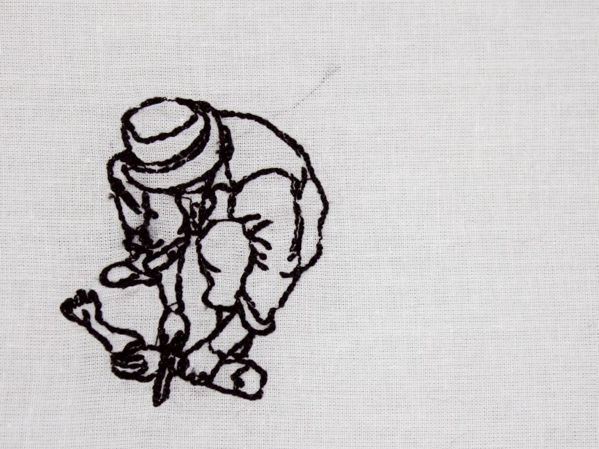 Les Cannibales forment une série de 14 broderies. Chacune de ces broderies reprend un détail iconographique extrait d’un document ethnographique ou anthropologique.